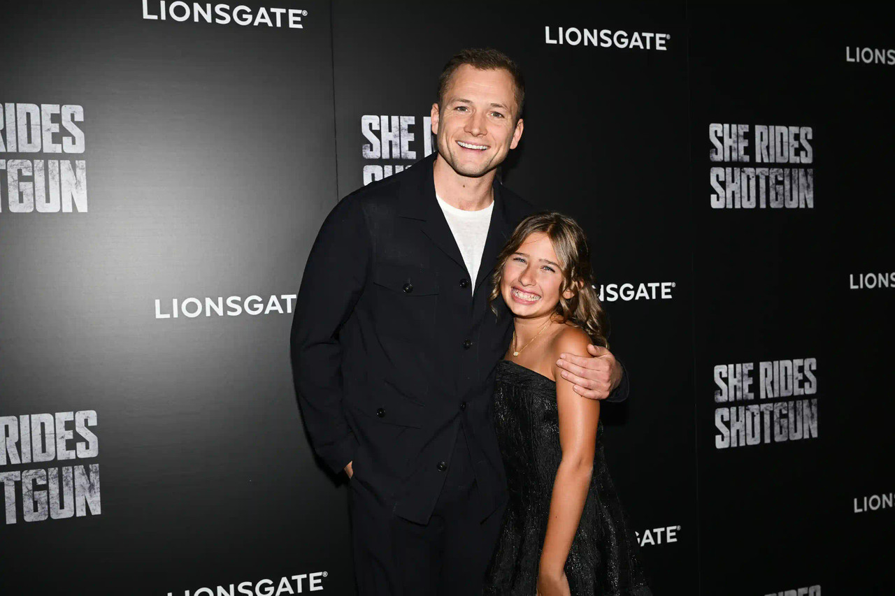 Taron Egerton and Ana Sophia Heger at She Rides Shotgun NY Premiere.
