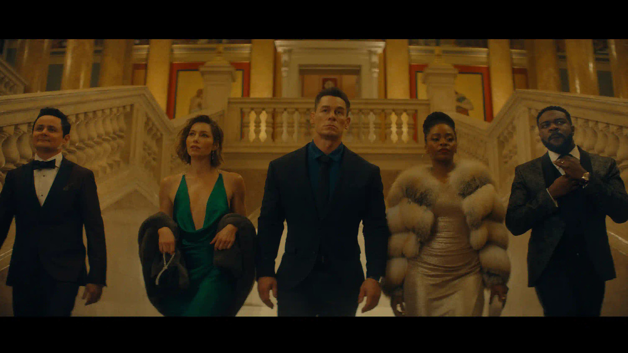 Arturo Castro, Jessica Biel, John Cena, Teyonah Parris and Sam Richardson in "Matchbox The Movie," premiering October 9, 2026 on Apple TV. Copyright © 2026 Apple Inc. All rights reserved.